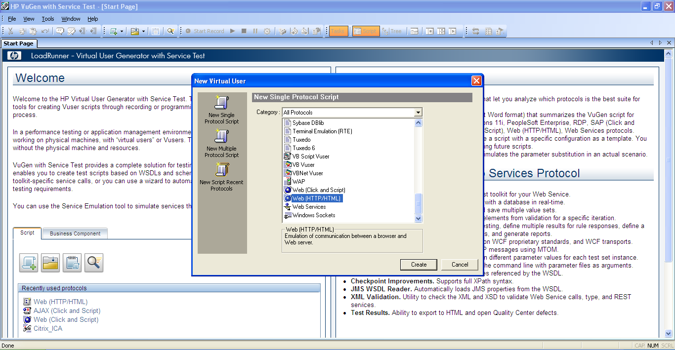 executes correctly. The recording mechanism works on Protocols (a language / medium which a client uses to communicate with the back end). If you will click on a New script, you will be asked to choose a Protocol.